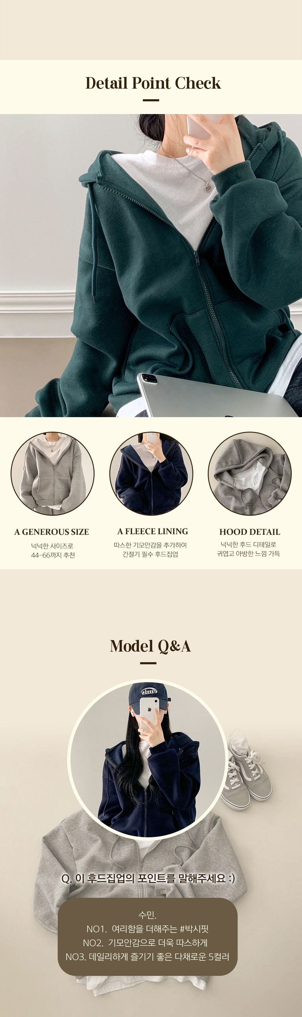 Comfortable to wear with 100% cotton fabric Overfit allows comfortable wear regardless of body shape The hood and brushed lining provide warmth and can be used between seasons