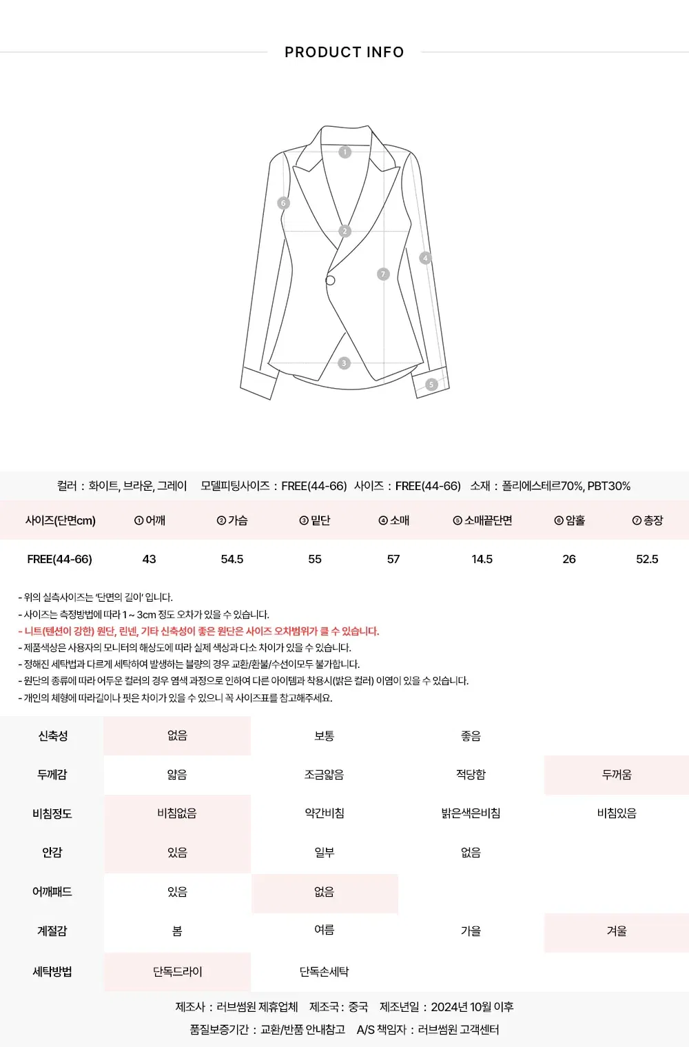 · Dry cleaning is recommended for the first wash of all clothes, please start wearing after washing.