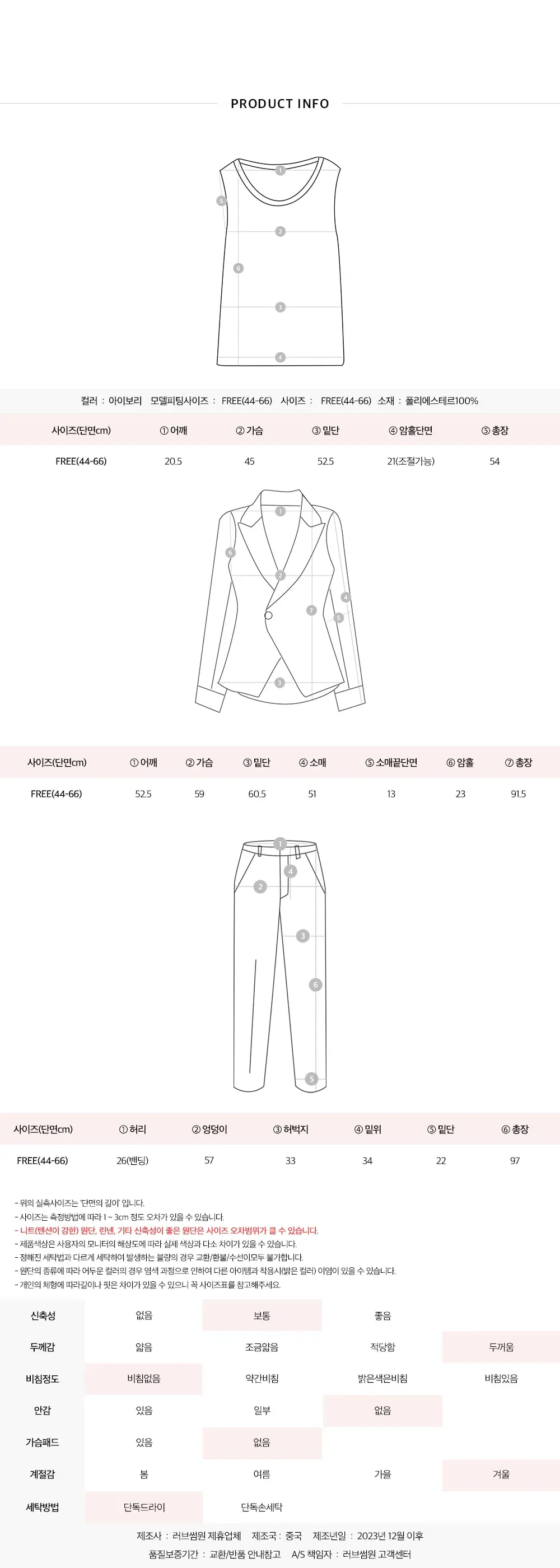 · Dry cleaning is recommended for the first wash of all clothes, please start wearing after washing.