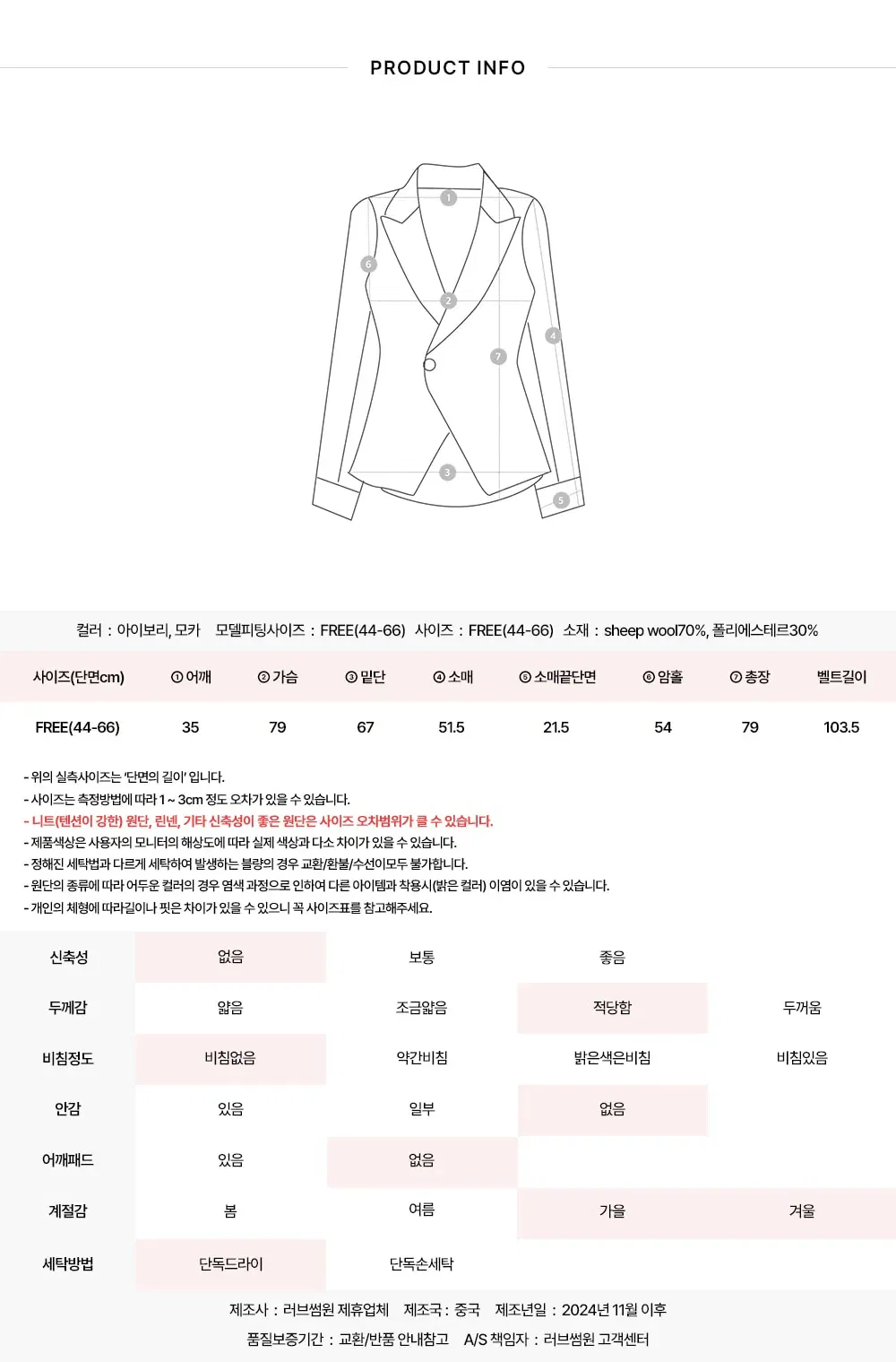 · Dry cleaning is recommended for the first wash of all clothes, please start wearing after washing.