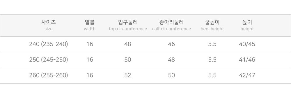 | 240, 250, 260 | 16 | 5.5 |