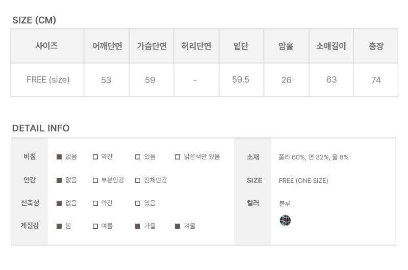 | FREE (size) | 53 | 59 | 26 | 63 | 59.5 | 74 |