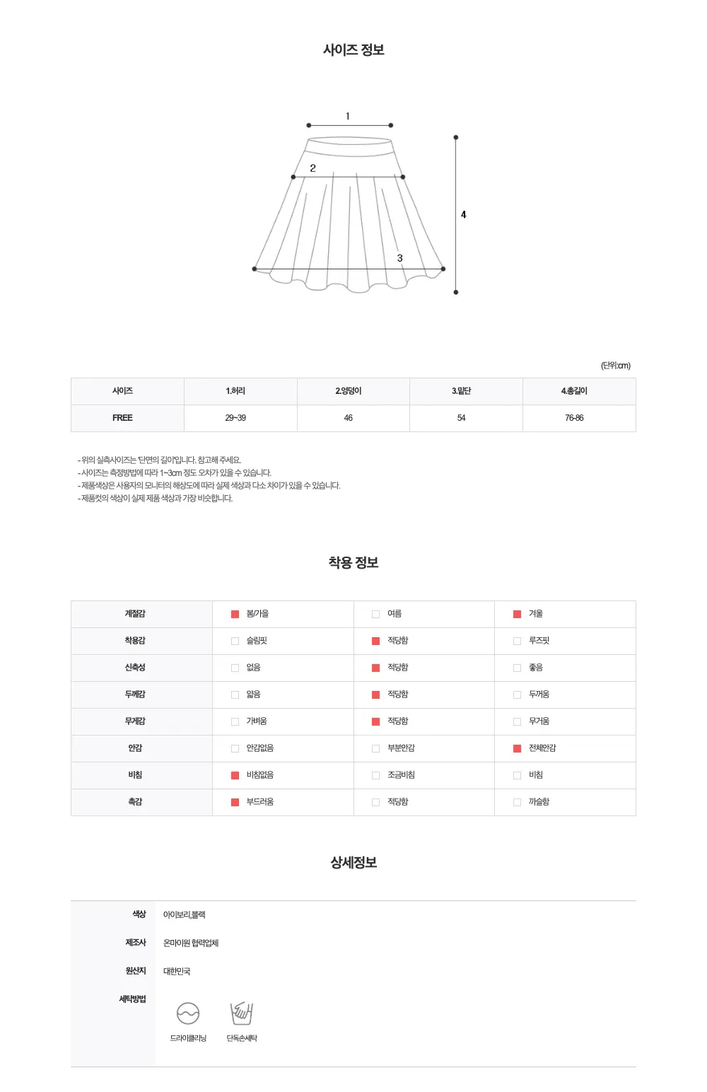 | Measurements are made with the garment laid flat. (The size may differ by 1~3cm) | ||||