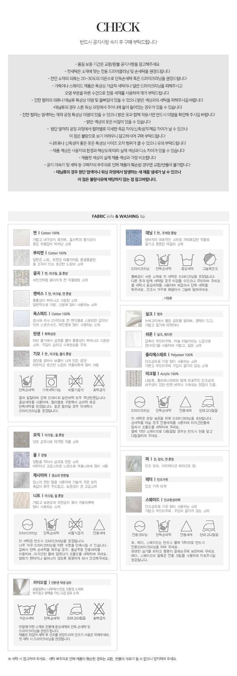 · Dry cleaning is recommended for the first wash of all clothes, please start wearing after washing.